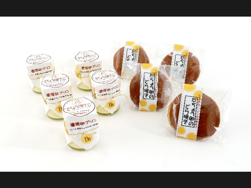 北海道倶知安町の老舗店「梅月菓子舗」のだちょうプリン&だちょう卵のどら焼セット。
