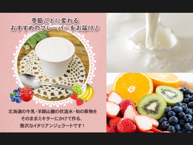 北海道の牛乳、羊蹄の天然水、新鮮な旬の果物を、そのままジューサーにかけてつくる贅沢な自家製ジェラートセット。