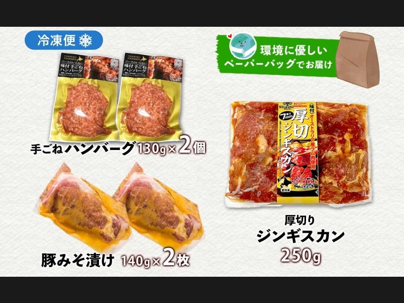 北海道 食べ比べ 3種セット ジンギスカン ハンバーグ 豚みそ漬け 牛肉 豚肉 合挽 ラム 羊肉 肩ロース国...