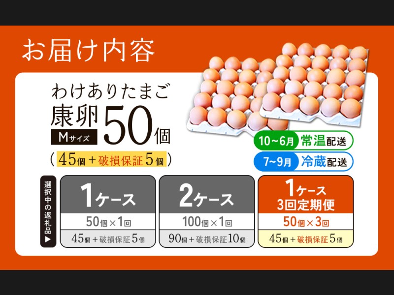 サイズ: 【3回定期便】わけありたまご「康卵」(50個)Mサイズ