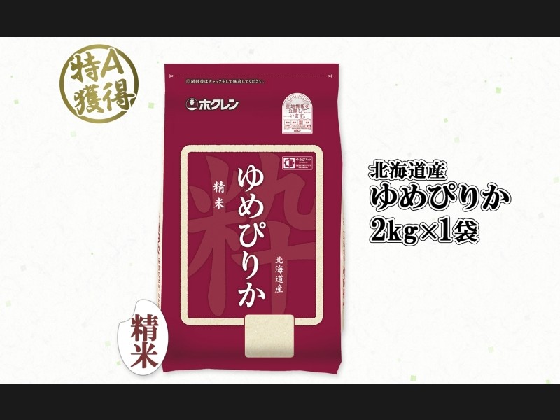 北海道産 ゆめぴりか 精米 2kg 米 特A 獲得 白米 お取り寄せ ごはん 道産 ブランド米 2キロ 2kg ×1袋 小...