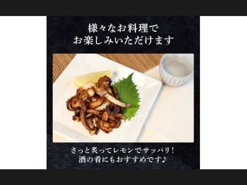イカの中でも最もおいしいと言われる王様「アオリイカ」のゲソを魚醤漬けにしました。 天ぷらやバター炒め、唐揚げなど調理方法は様々で程よい太さ、柔らかさ、味身をぜひご賞味ください。