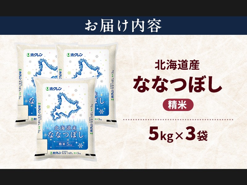 (精米)ホクレン北海道ななつぼし15kg(5kg×3袋)をお届けします。