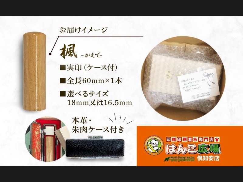 北海道 楓 印鑑 実印 60mm×1本 ケース付 選べる 書体 18mm 16.5mm はんこ ハンコ ケース 本革 もみ革 朱...
