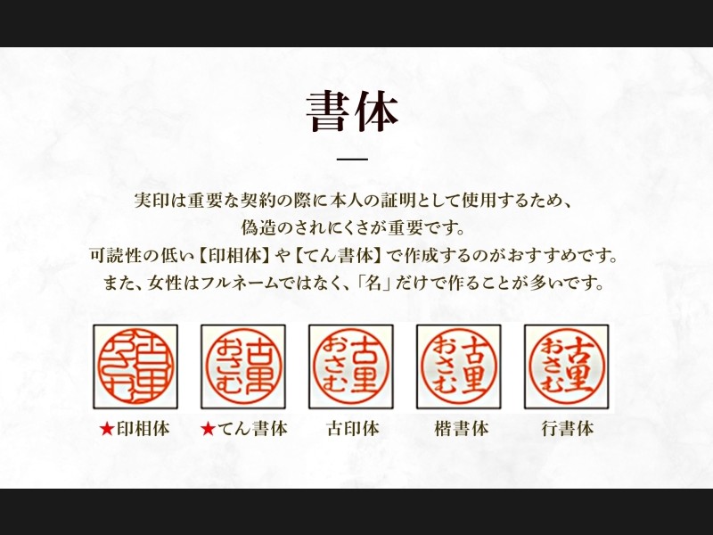 ※印影の校了後、または、制作完了後のお名前・書体などの変更は出来ません。