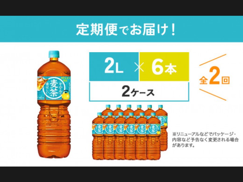 【2回定期便】やかんの麦茶 from 爽健美茶 PET 2L×6本×2ケース×2回 【コカコーラ】麦茶 お茶 飲料 ペッ...