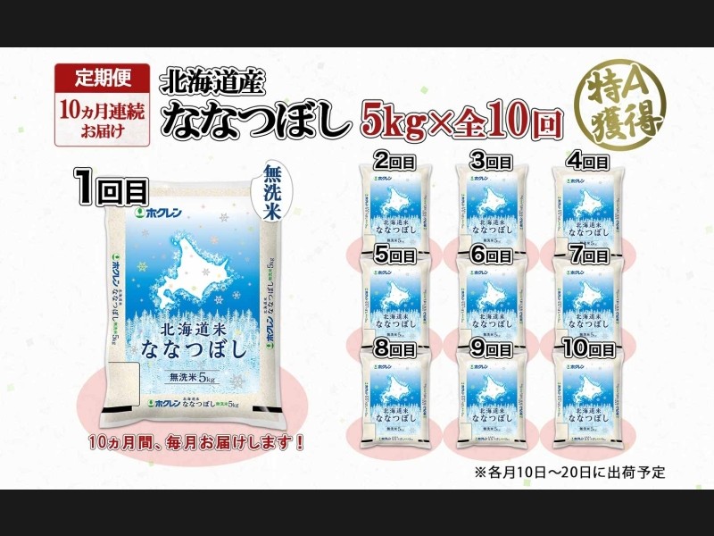 定期便 10ヵ月連続10回 北海道産 ななつぼし 無洗米 5kg 米 特A 白米 お取り寄せ ごはん 道産米 ブラン...