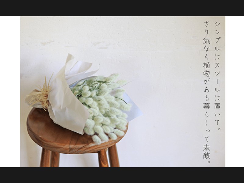 "感謝"の花言葉をもつラグラスを使ったブーケはボタニカルでシンプルを好む方へのプレゼントや贈り物にもおすすめです。