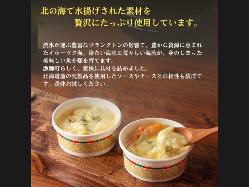 サイズ: ずわいグラタン120g、帆立グラタン130g