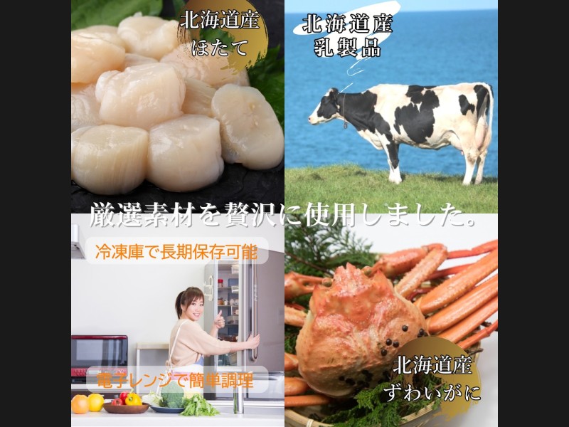 【原産地】ずわいがに:北海道沖産、帆立・他:北海道沖産