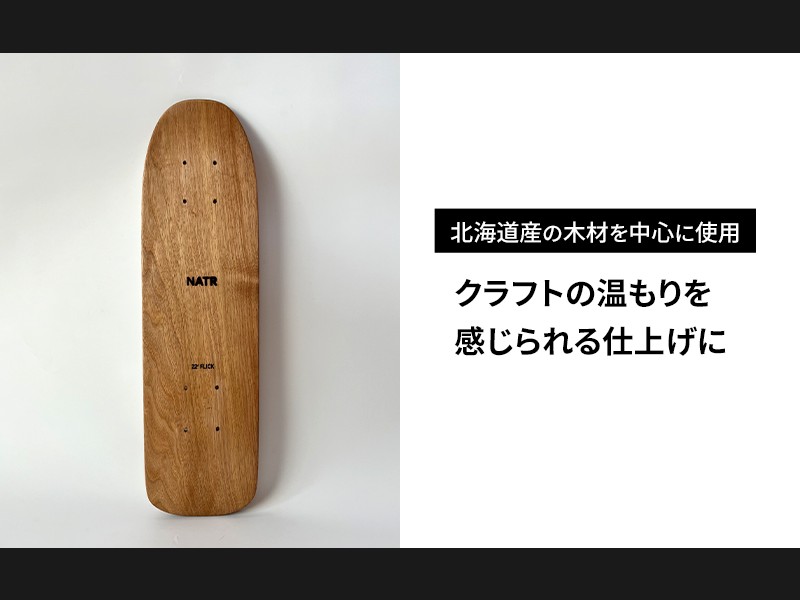 素材には北海道産の木材を中心に使用し、クラフトの温もりと滑走性能を両立しています。