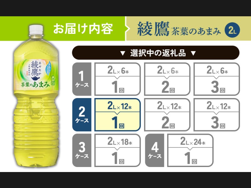 綾鷹 茶葉のあまみ 2L PET【コカ・コーラ】ペットボトル 2ケース(12本) セット お茶 緑茶 日本茶 茶葉 ...
