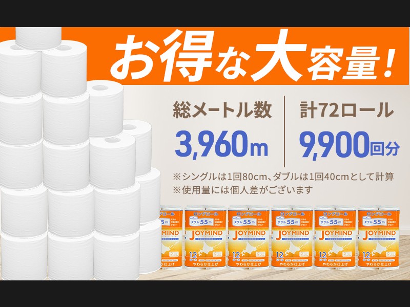 内容量:12ロール×6個パック(計72ロール、総メートル数3,960m)
