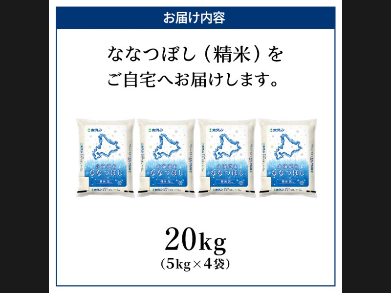 (精米)ホクレン北海道ななつぼし20kg(5kg×4袋)をお届けします。
