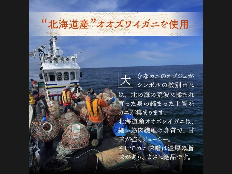 流氷がはぐくむ豊かな海で、毛ガニ・ズワイガニ・タラバガニの三大ガニのほか、ホタテ、鮭などの豊富な魚介類を味わえます。