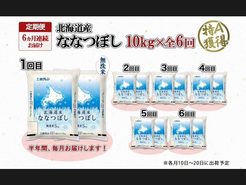 定期便 6ヵ月連続6回 北海道産 ななつぼし 無洗米 10kg 米 特A 白米 お取り寄せ ごはん 道産米 ブランド...