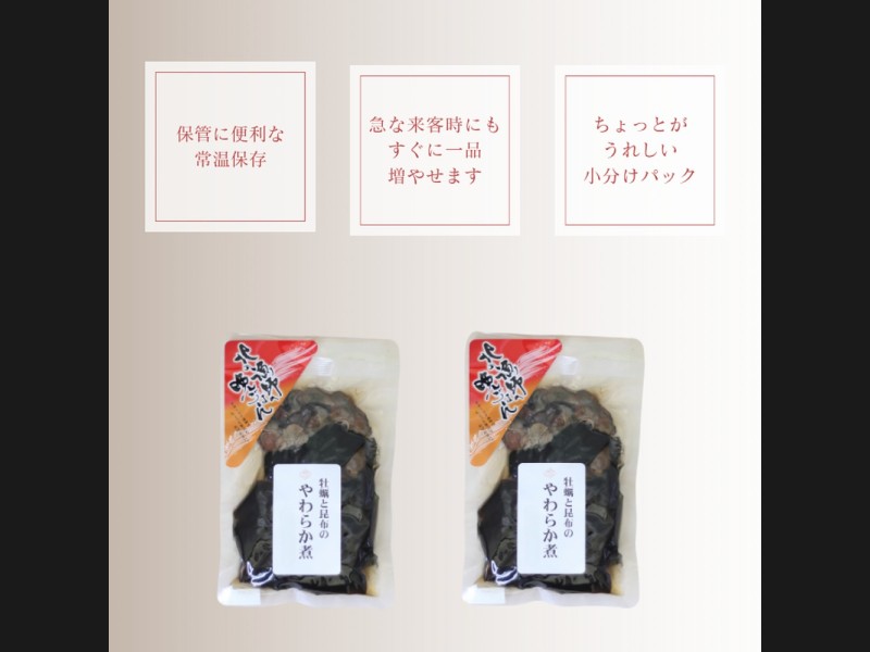 10-539 【お手軽調理】牡蠣と昆布のやわらか煮 ハーフサイズ2個【紋別漁師食堂】【化粧箱入り】