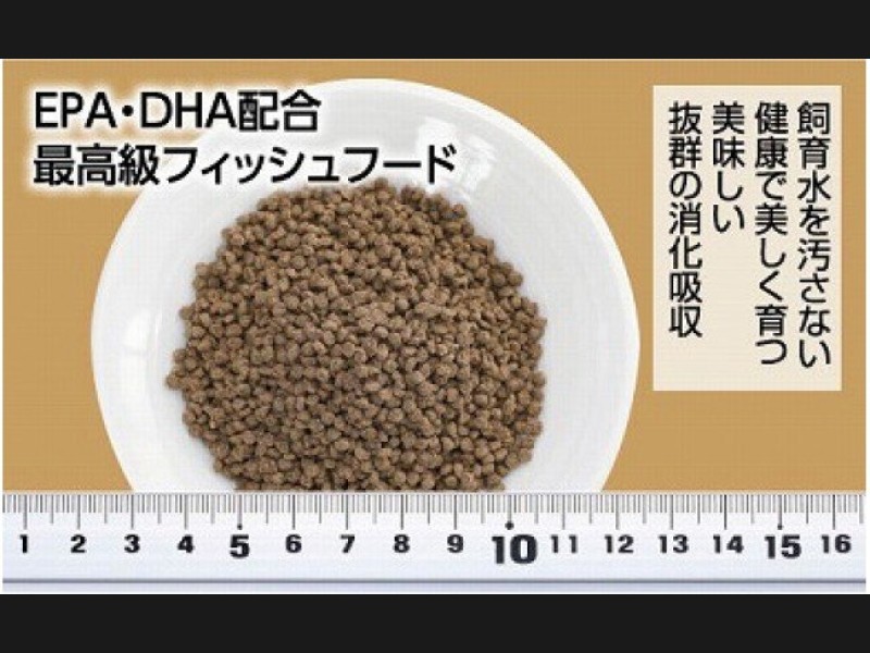 魚の健康と良好な水質を追求。ビタミン・ミネラルの豊富な海藻を多量に使用し消化吸収の難しい小麦粉類を排除。 魚が生きていくために非常に重要な働きをする生理活性物質を作り出すEPA・DHAの配合に成功。高次元の栄養バランスを実現した画期的なドライフードです。