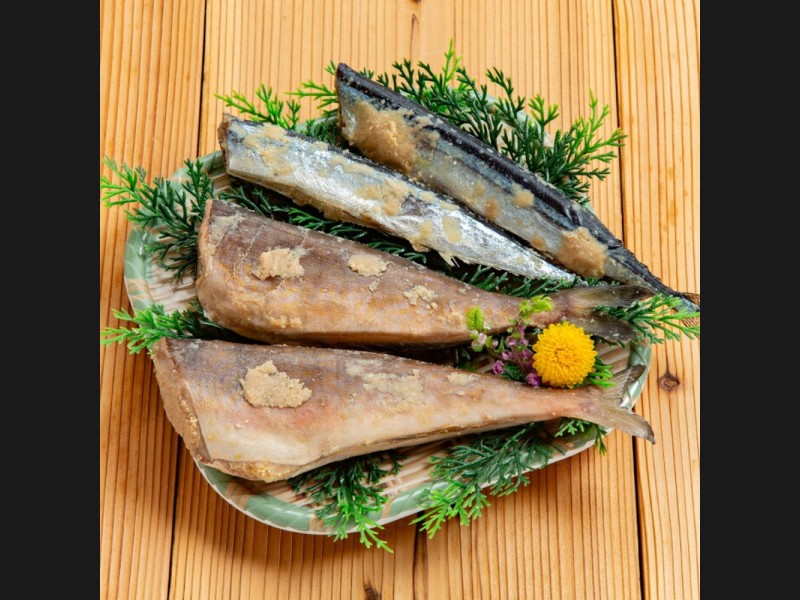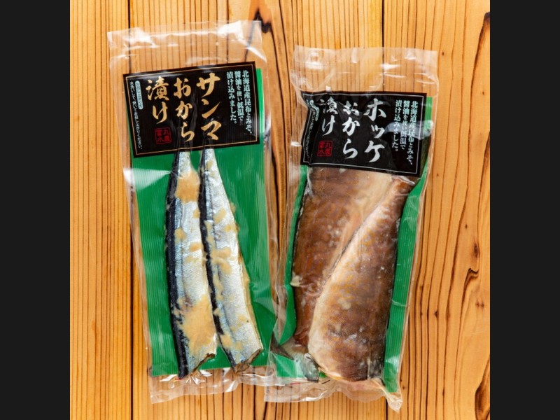 北海道の新鮮なホッケとサンマを豆腐のおからと味噌、砂糖など独自調合し2週間漬け込み熟成させました。