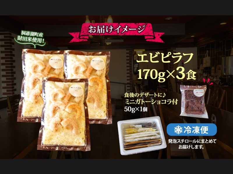 パーラーふくだ特製 エビピラフ 3食 ミニガトーショコラ付 北海道 財田米 えび 海老 ピラフ スイーツ ...