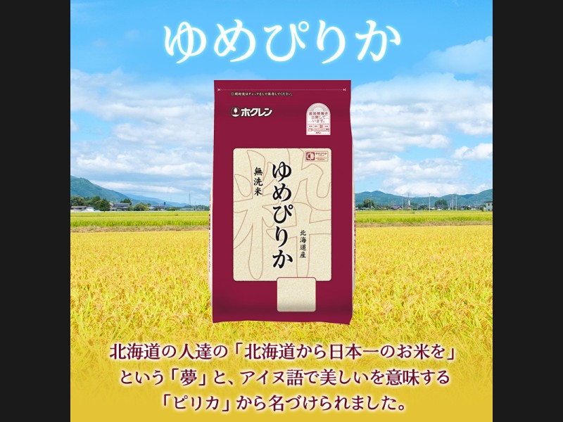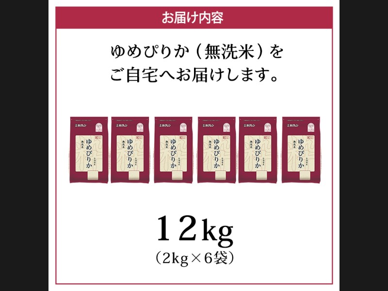 (無洗米)ホクレンゆめぴりか12kg(2kg×6袋)をお届けします。