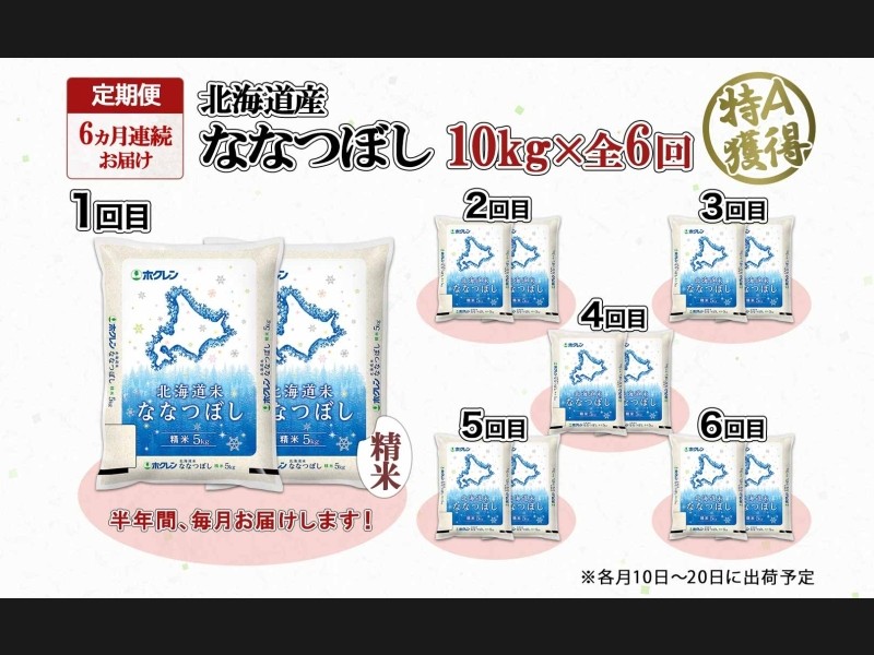 定期便 6ヵ月連続6回 北海道産 ななつぼし 精米 10kg 米 特A 白米 お取り寄せ ごはん 道産米 ブランド米...