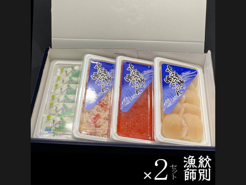 サイズ: ずわいほぐし身・帆立・いくら醤油漬(鱒) 各100g、山わさび4.5g×6袋(化粧箱入り) を2セット