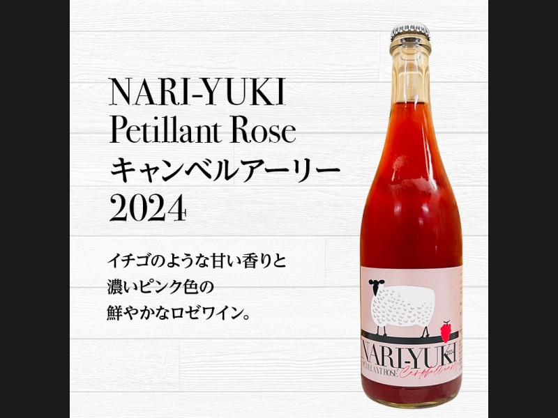 NARI-YUKI Petillant Rose キャンベルアーリー 2024:余市産キャンベルアーリー。イチゴのような甘い香りと濃いピンク色の鮮やかなロゼワイン。
