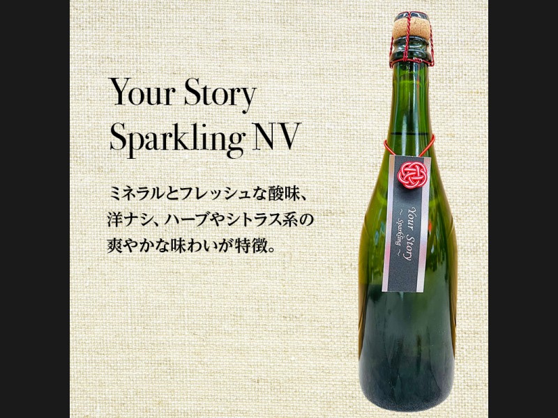 Your Story Sparkling NV:余市安芸農園産のバッカス・ケルナーを使用した混醸スパークリングワイン。「Your Story」シリーズでは初のスパークリングワインとなります。