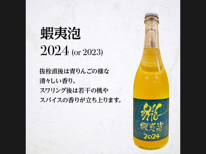 蝦夷泡 2024 (or 2023):抜栓直後はナイアガラ特有の香りではなく青りんごの様な清々しい香り、スワリング後は若干の桃やスパイスの香りが立ち上ります。口当たりは柔らかだがしっかり辛口、酸はありながら、飲み口はなめらか。口いっぱいに広がる泡感が魅力で、ペティアンとは思えない満足感があります。