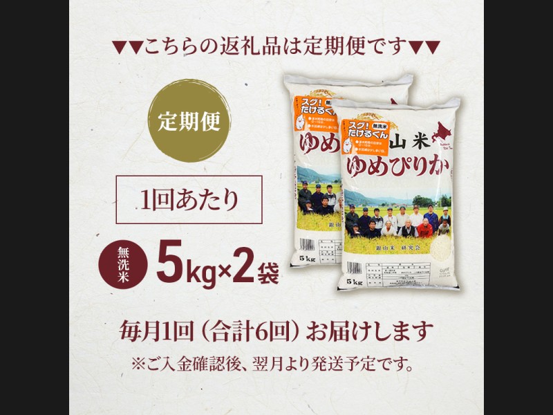 6ヵ月 定期便 銀山米研究会の無洗米<ゆめぴりか>10kg(5kg×2袋)【機内食に採用】 ライス 白米 精米 ...