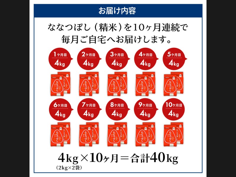 サイズ: ホクレン喜ななつぼし精米4kg(2kg×2袋)を10ヵ月間お届けいたします