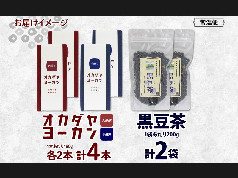 北海道 洞爺湖町 黒豆茶 2袋 ようかん 2種 計4本 セット お茶 北海道産 黒豆 自家焙煎 オカダヤヨーカン...