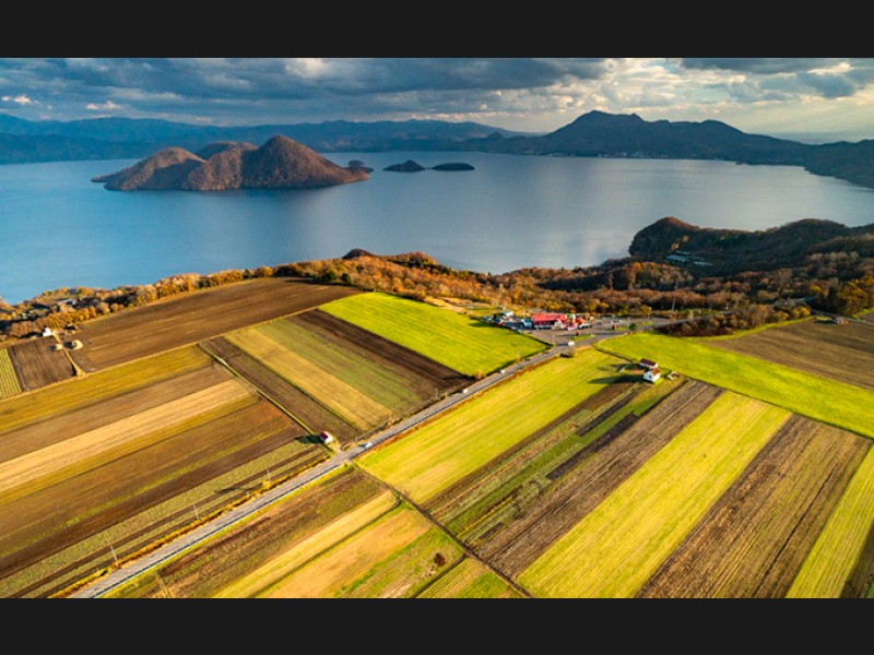 まるで宝石のような湖面の輝き、いまも水蒸気を噴出する有珠山の火口、どこまでも続く美しい山並み、北海道でも屈指の名峰・羊蹄山、そのどれもが、地上とはまったく違うダイナミックな表情で眼前に広がっていきます。