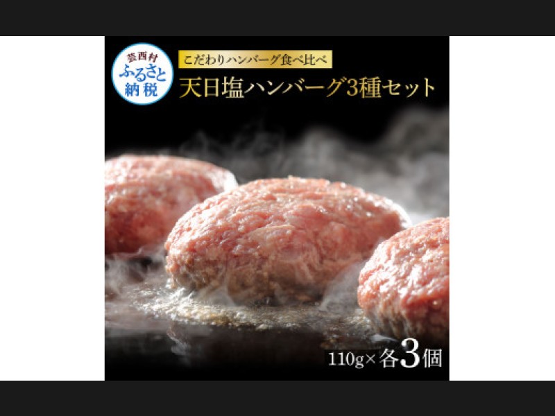 CDM016 食べ比べ!天日塩ハンバーグ3種セット各3個(110g×3種) 合計9個 ...