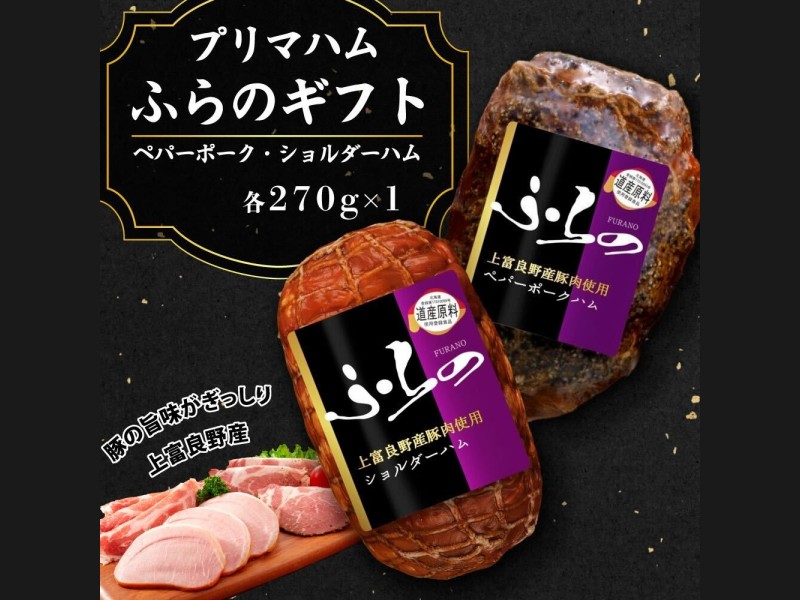 【配送不可:離島】 北海道上富良野町産の豚肉を道内の工場にてハムに仕上げています。風味豊かなロースハムとペパーポークハム、北海...