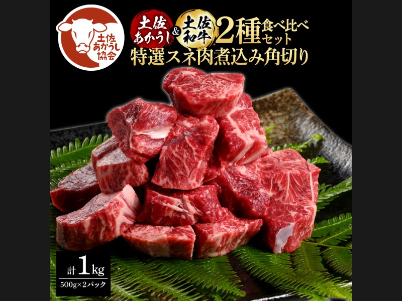 土佐あかうし&土佐和牛2種食べ比べ(500g×2パック)1キロ 1kg 特選スネ肉...