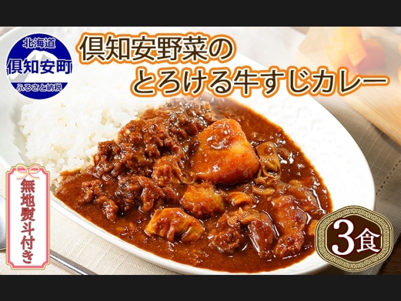 無地熨斗 倶知安 牛すじカレー 中辛 計3個 北海道 レトルト食品 牛すじ 野...