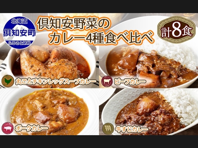 北海道 倶知安 カレー 4種 食べ比べ 各2個 計8個 中辛 スープカレー ビー...