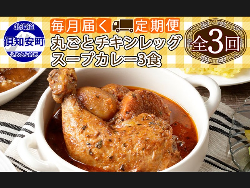 【定期便】毎月1回 計3回 倶知安 チキンレッグスープカレー 3個 中辛 加工...