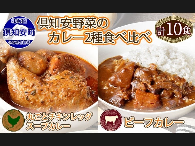 【倶知安チキンレッグスープカレー・倶知安ビーフカレー食べ比べ10個セット】 当店自慢のビーフカレーとスープカレーを食べ比べていた...