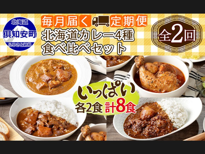 【定期便】毎月1回 計2回 カレー 4種 食べ比べ 8個 中辛 チキンレッグ ス...