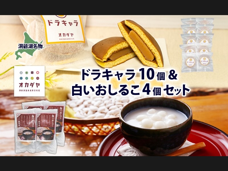【配送不可:沖縄県・離島】 北海道洞爺湖町より「白いおしるこ&ドラキャラセット」! 老舗和菓子店「岡田屋」で人気のお汁粉とどら...