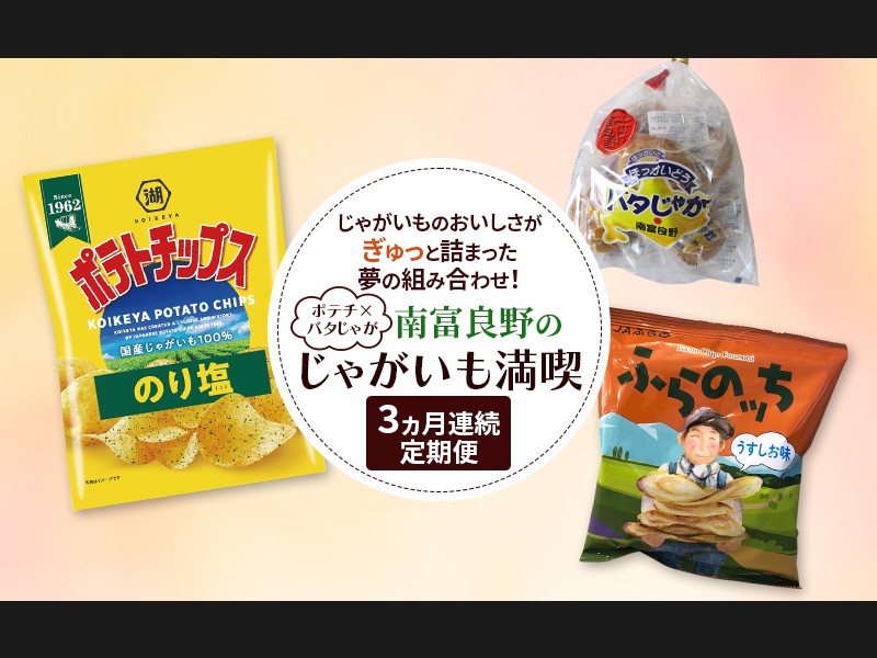 南富良野町の大人気じゃかいも商品を毎月1回、3ヵ月にわたってお届けします。 ホクホクのじゃがいもと濃厚なバターが織りなす「じゃが...