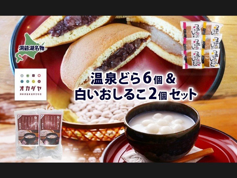 北海道 温泉どら 6個 白いおしるこ 2個 セット おしるこ お汁粉 どら焼き ...