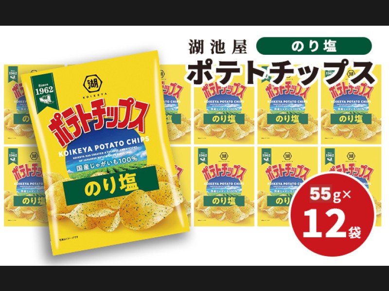 ポテチ 北海道 出来立て発送 湖池屋 ポテトチップス のり塩 55g×12袋 南富...