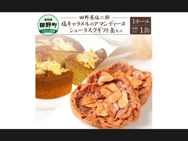 ★田野屋塩二郎完全天日塩★シューラスクギフト缶(20枚入)1缶+塩キャラメ...
