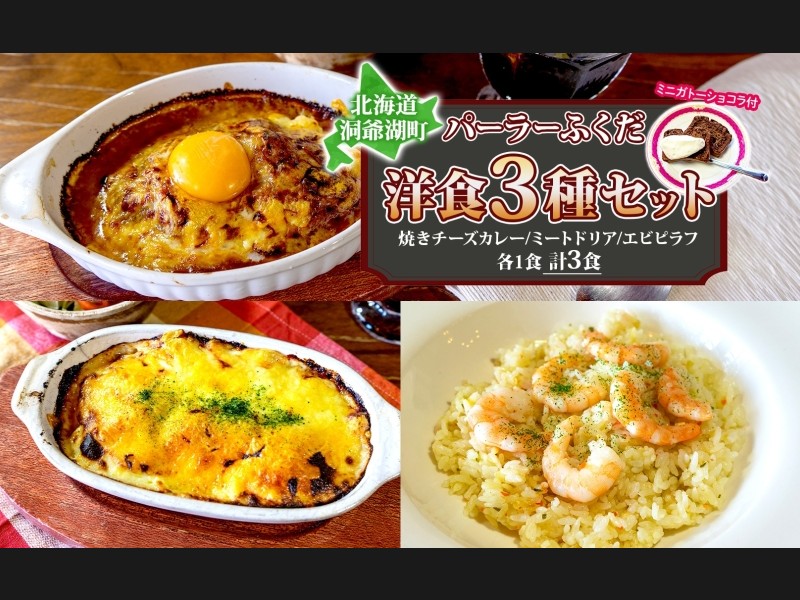 パーラーふくだ特製 焼きチーズカレー 3食 ミニガトーショコラ付 北海道 ...