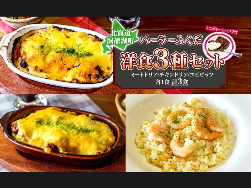 洞爺湖温泉街で大人気の手作り洋食! 素材にもこだわった洋食3種をお届けします。 パーラーふくだ特製の手作り洋食3種詰め合わせで...