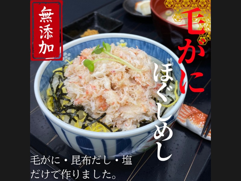 【年内配送12月15日入金まで(オンライン決済限定)】 北海道で水揚げされた毛がに。その身を手ほぐしし、炊き込みご飯の素にしました。 ...